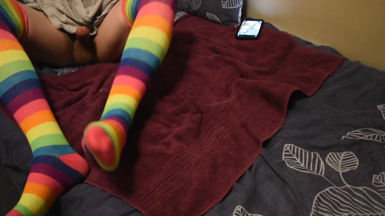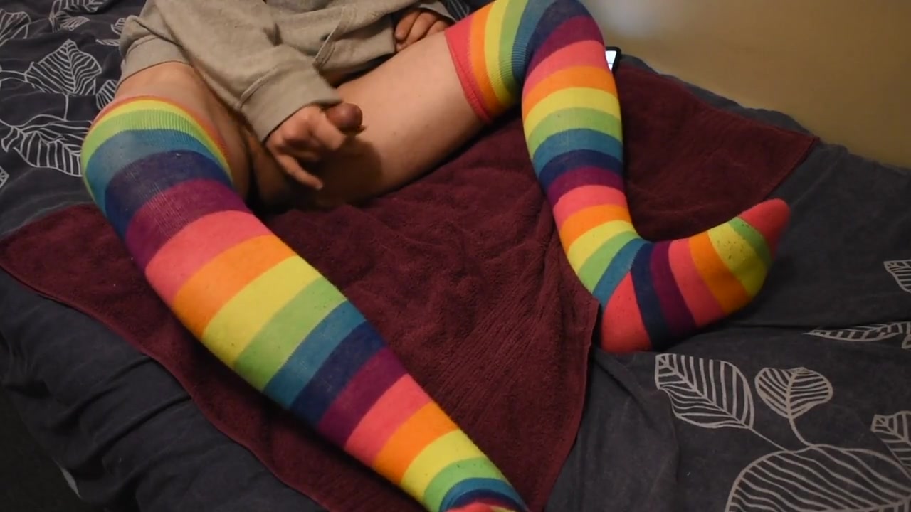 Femboy Crossdresser Jizzing in a Pair of Hip Highs