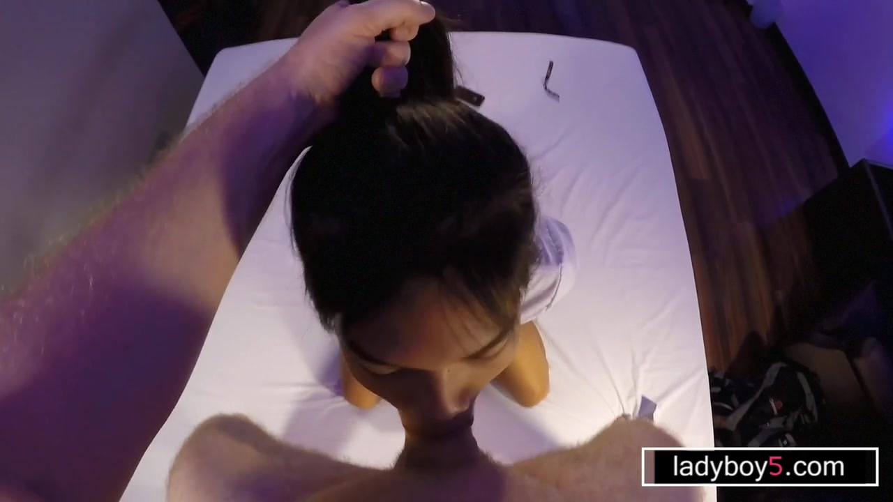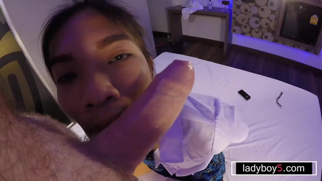 Schoolgirl ladyboy with a big dick named Kib does some serious cock sucking while in bondage by handcuffs while her cock hangs from underneath her miniskirt In Thailand you can make all your fantasies come true with these hot Asian shemale sluts!
