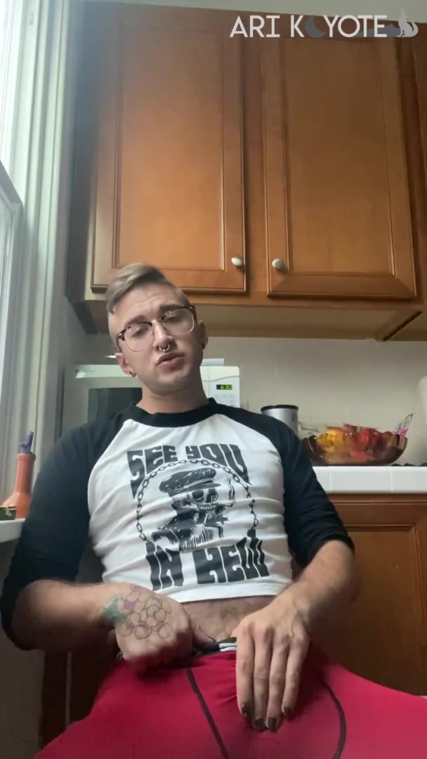 Unshaved Pussyboy Plays with Moist Labia through Latex Stretch Pants