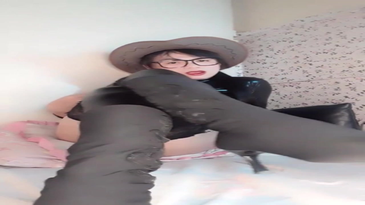 BLACK SPANDEX STRETCH PANTS Thick butt taunt, slap, high-heeled shoes & g-string