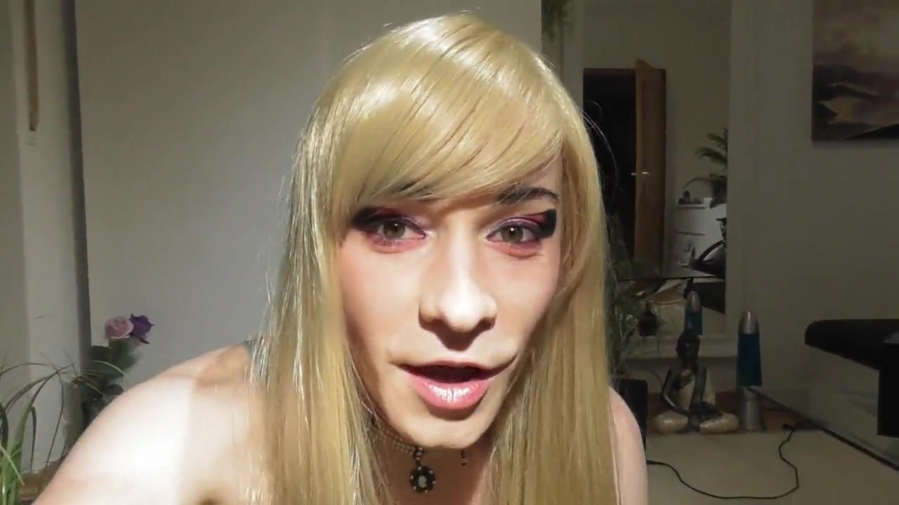 Incredible Bum Posing by Thin platinum-blonde Crossdresser Nelessia