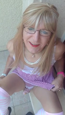 Dark-haired t-model in pinkish nightie flashes off her smallish dick
