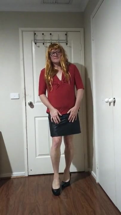 Trying a new look with different wig colour and red top with leather skirt if you like let me know love to meet boy friends online and im so horny right no so talk dirty to me on this site.