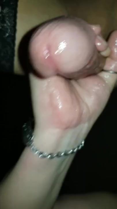Wife gives a sloppy handjob to sissyboy