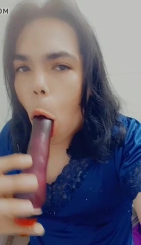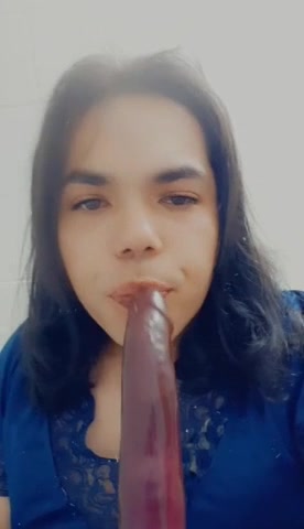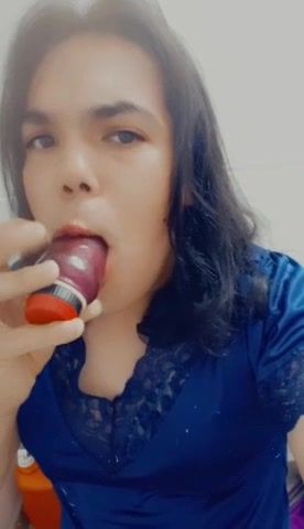 Super-Fucking-Hot She-Male Seducing You While Deep-Throating And Railing a Fake Penis