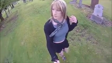 Incredibly sultry sexy Naomi wanders around a deserted cemetery in two pairs of seductively horny high heels, tiny flighty mini skirt and tight ribbed crop top while trying not to sink into the grass