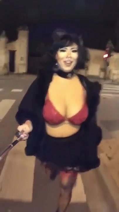very attractive crossdresser going to a party in her new breast form suit
