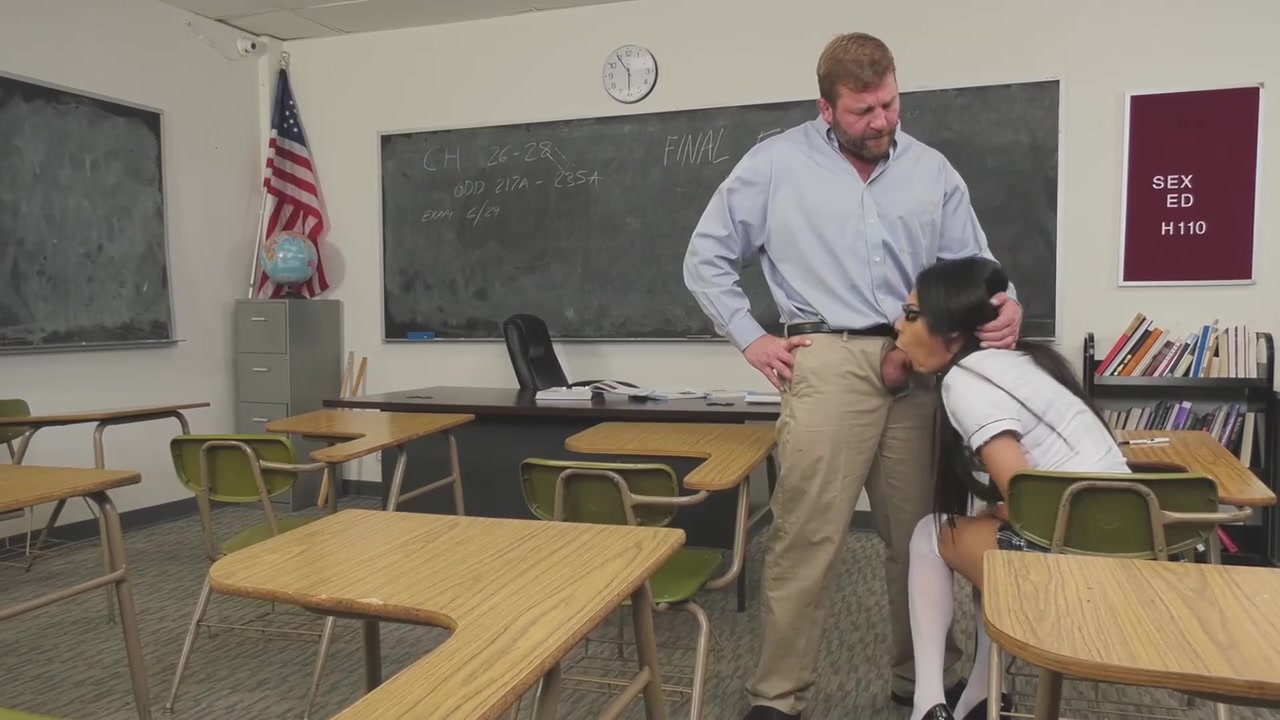 Diligent tranny schoolgirl Milli Quinzel with her stong teacher Colby Jansen