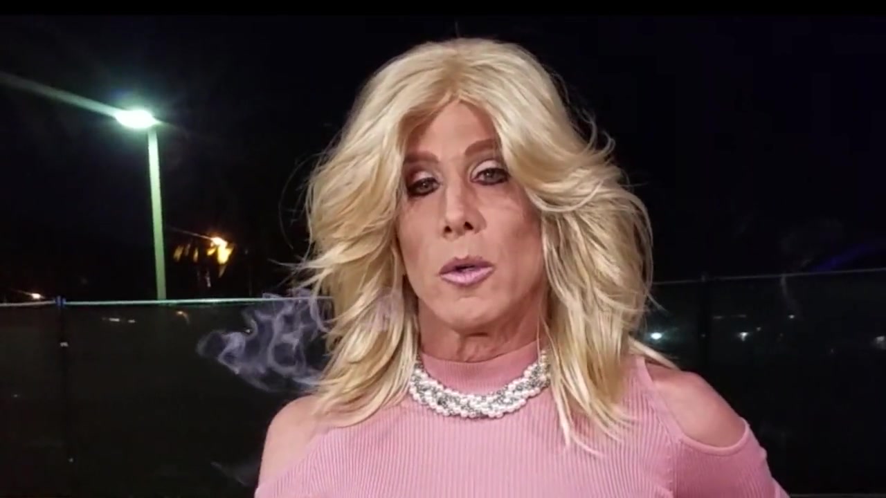 Crossdresser smoking in public
