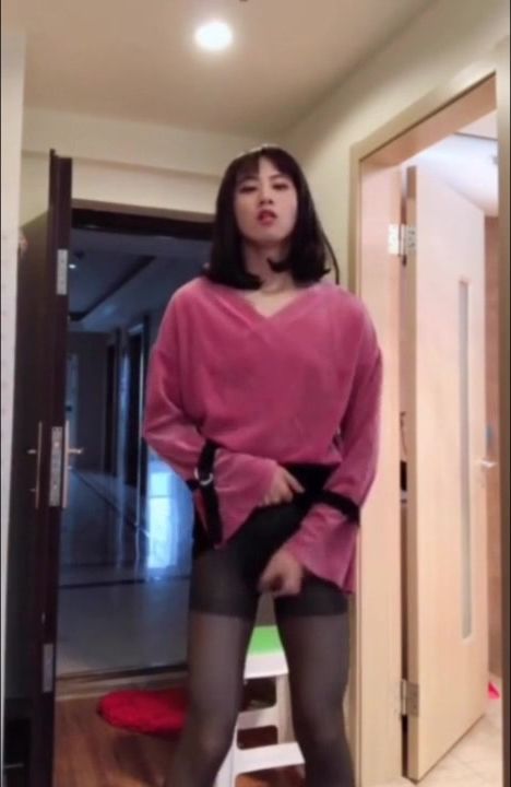 Chinese T-Model milking her cock demonstrating it to a girl, and jizz