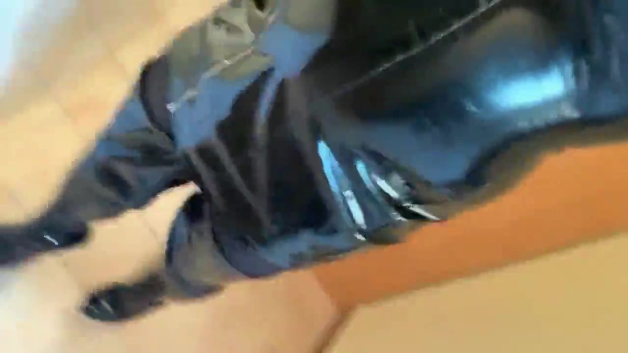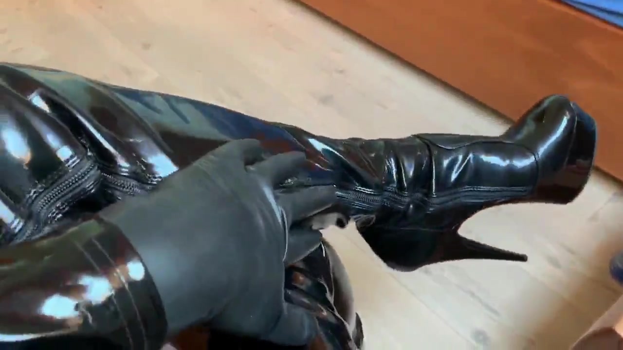 robe vinyl cuissardes vinyl, gant en latex et faux seins taille e