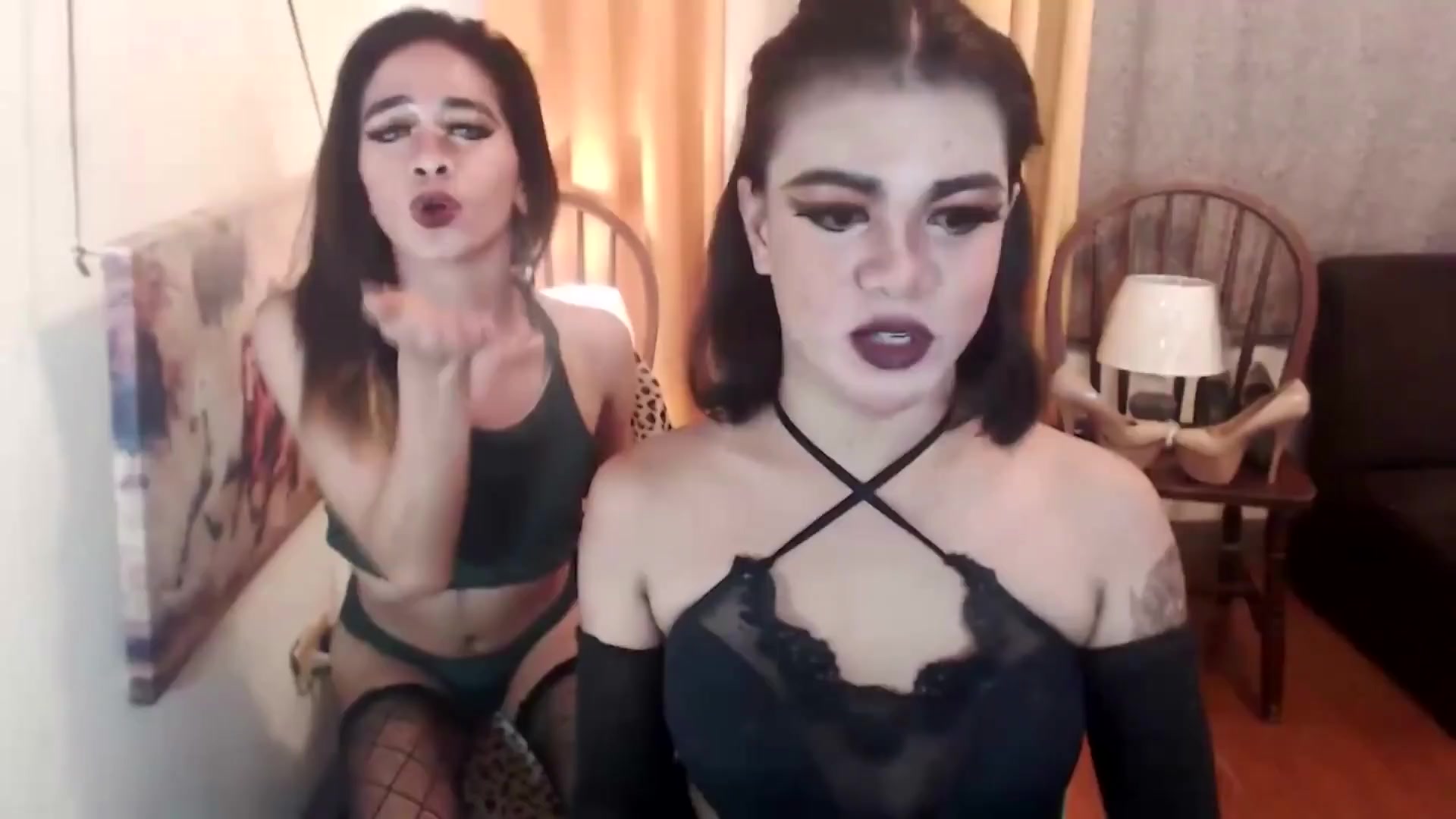 2 Super-Fucking-Hot Ladyboy Stunner Nailing In Front Of Webcam