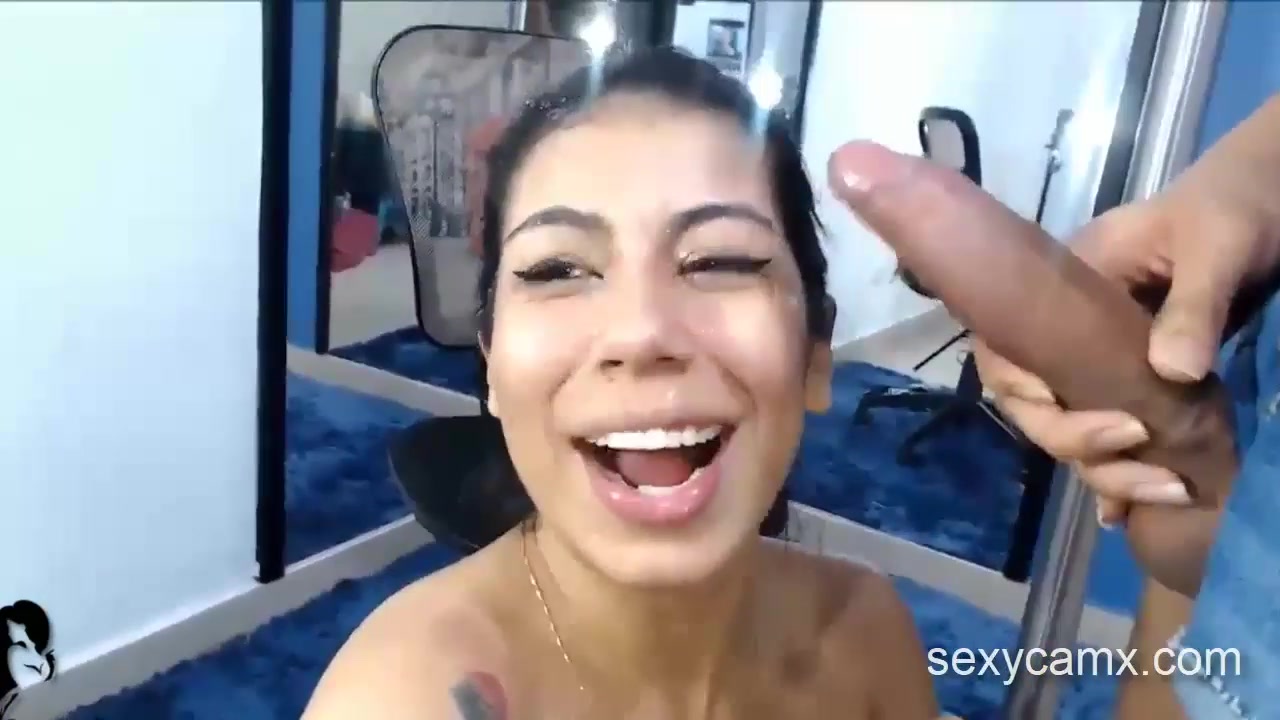 Hot latina camwhore suck and fuck big cock shemale and gets load of cum all over her slutty face on webcam show live at sexycamx
