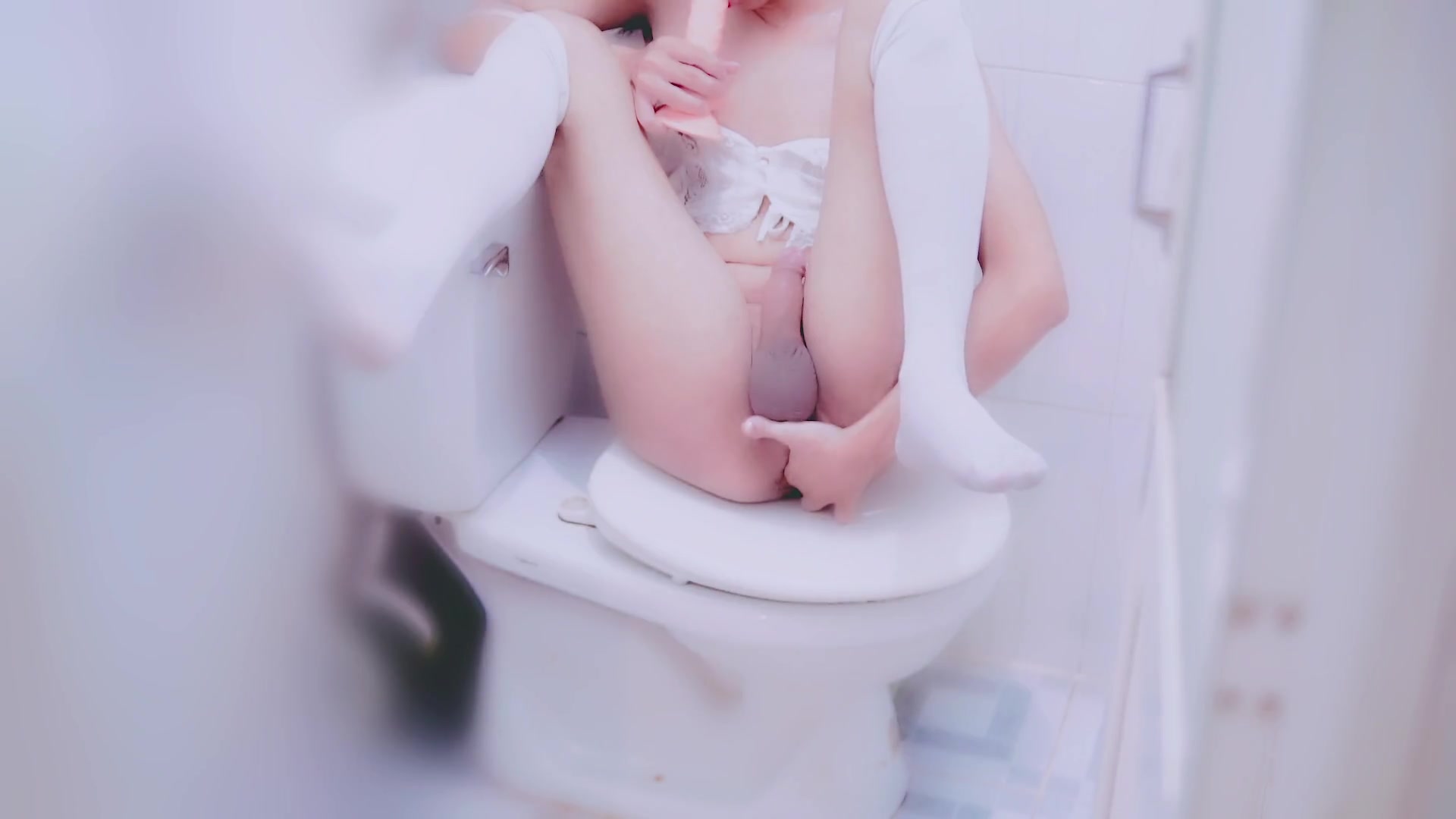 Nice Chinese Crossdreser Ass Fucking & Spunk in Restroom