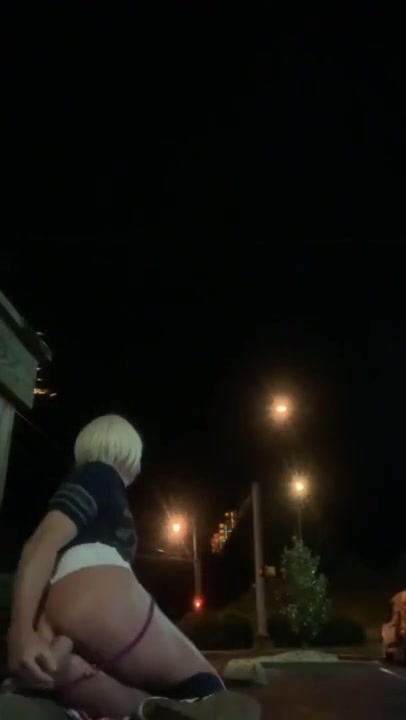 Outdoor first-timer tgirl demonstrating her bootie close-up
