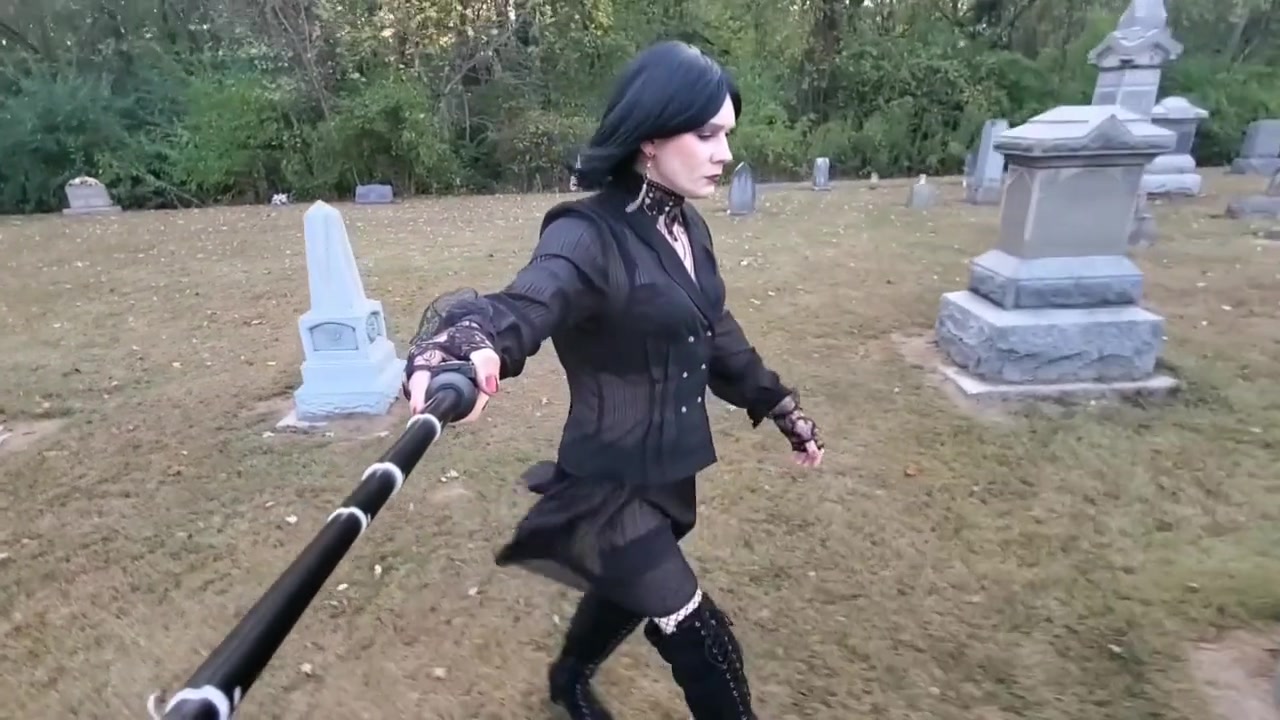 Halloween hookup Cemetery BDSM anal sex over coffin