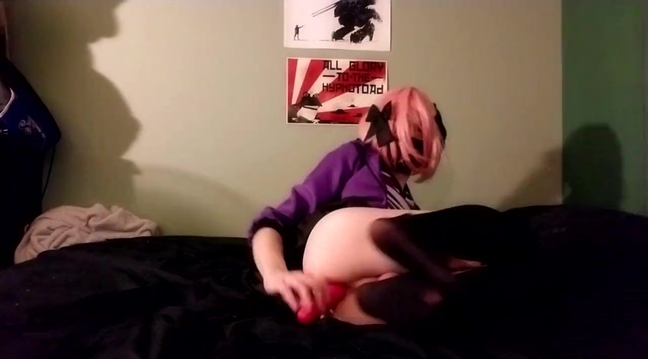 Uber-Cute Astolfo Crossplaying Femboy Pounds Self With Fake Penis and Jizzes Forearms-free-for-all
