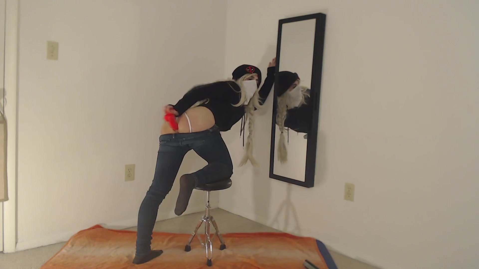 Lovely Trap in Taut Denim Tears Up a Dragon Fuckpole until she Blows A Load