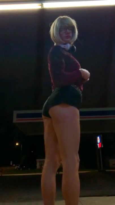 Public exhibition Sissy Addicted to flashing her bitchy rump