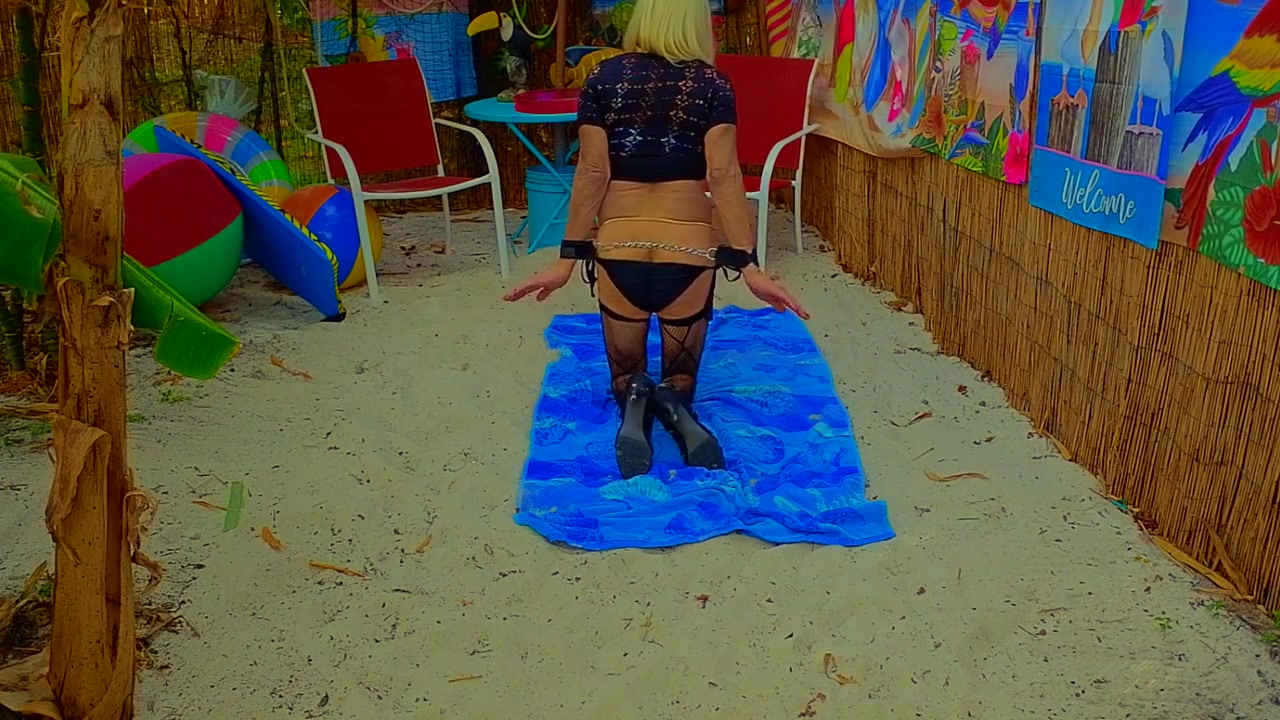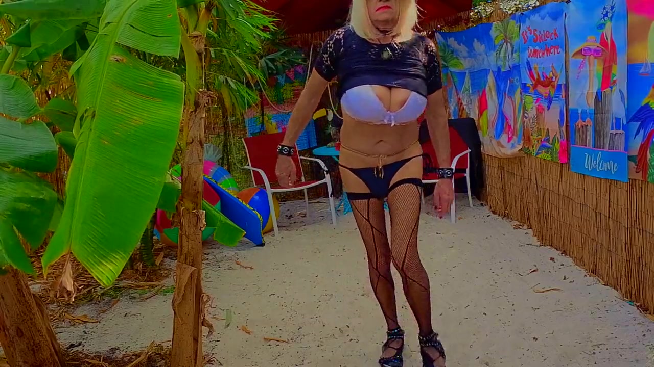 Little innocent CD crossdresser gurl modeling clothes at the motel beach bar... Don't you know she needs you to admire her new whore clothes ?