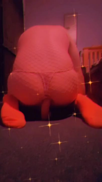 Sissy in pinkish fishnets deep-throats fake penis and taunts boi puss
