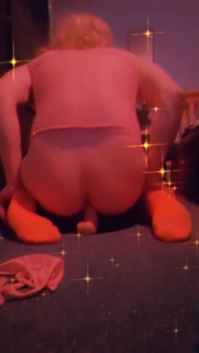 Transfemale taunts and plays with her booty with a pinkish fake penis