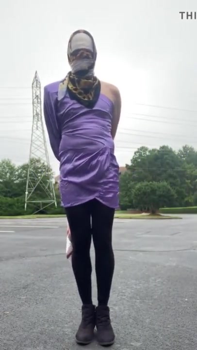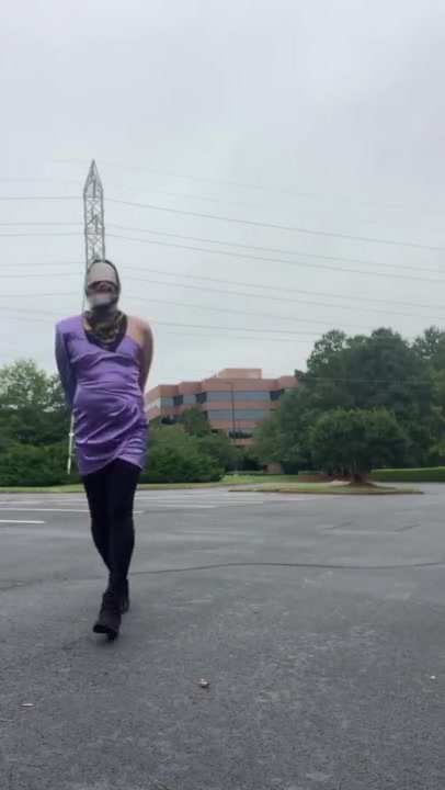 Strapped up restrain bondage in my blue satin sundress en scarf