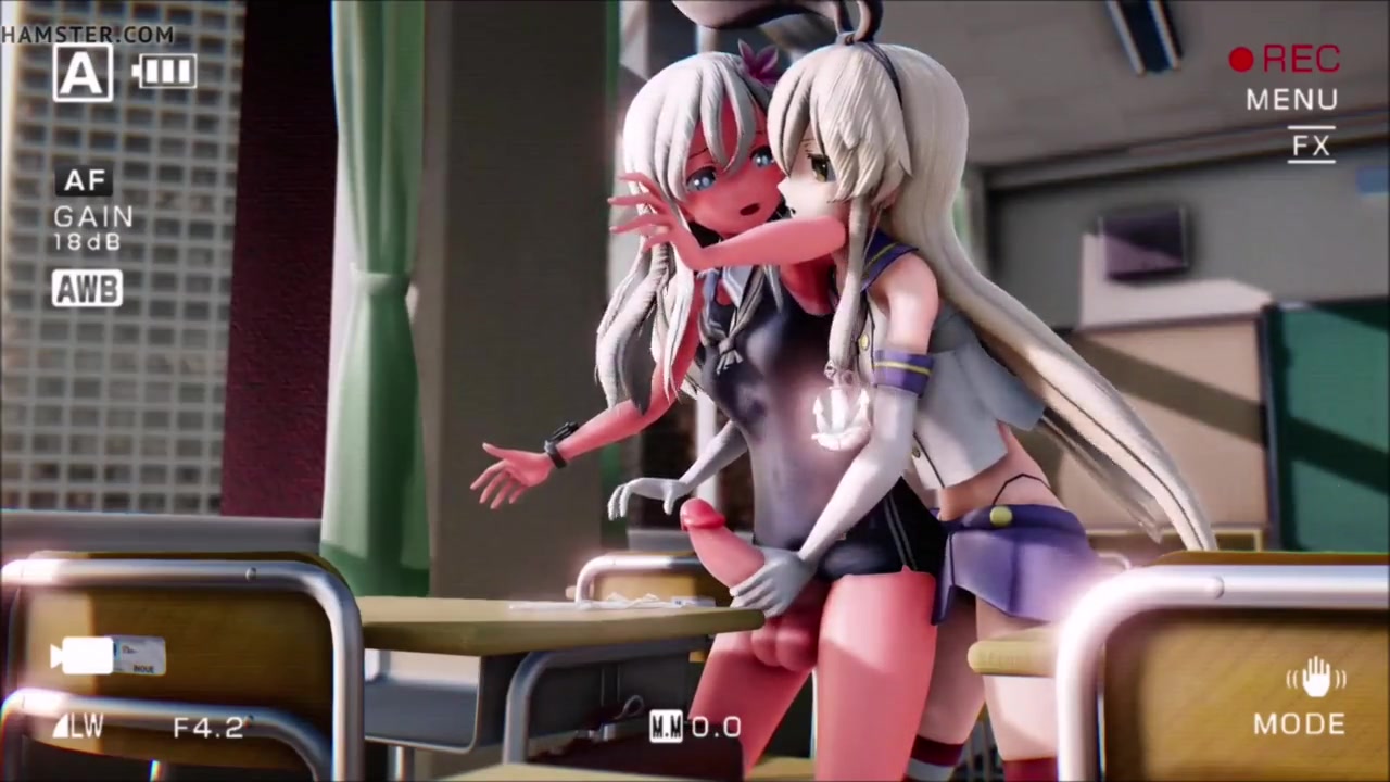 Kantai Collection Shimakaze helps Ro-500 masturbate her futanari cock on camera in this MMD futa hentai music video.
