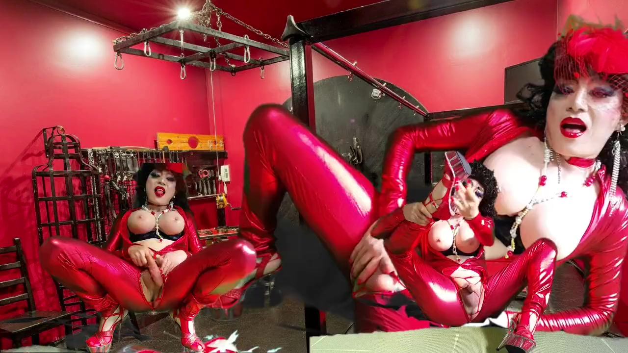 Fetish Luxurious Crossdresser Crimson Spandex Pvc Catsuit