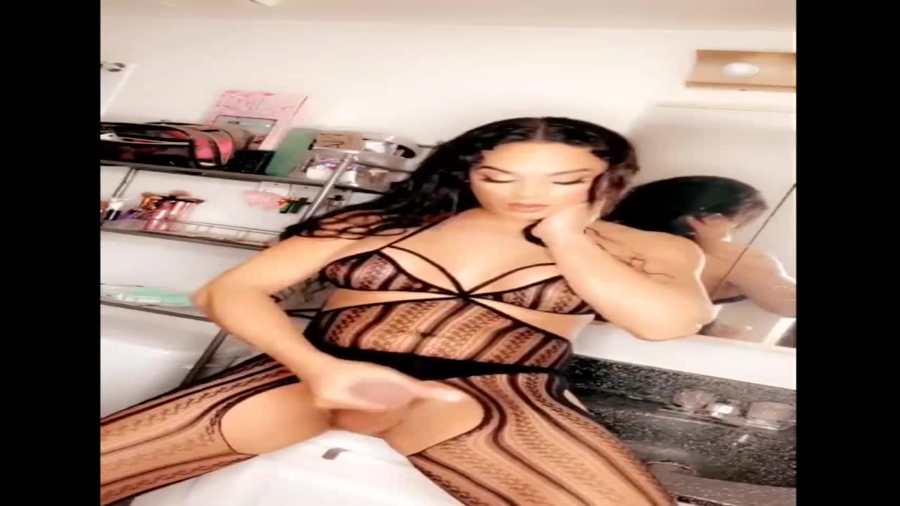 Marvelous dark flesh Mexican transsexual with fat pipe shoots a load
