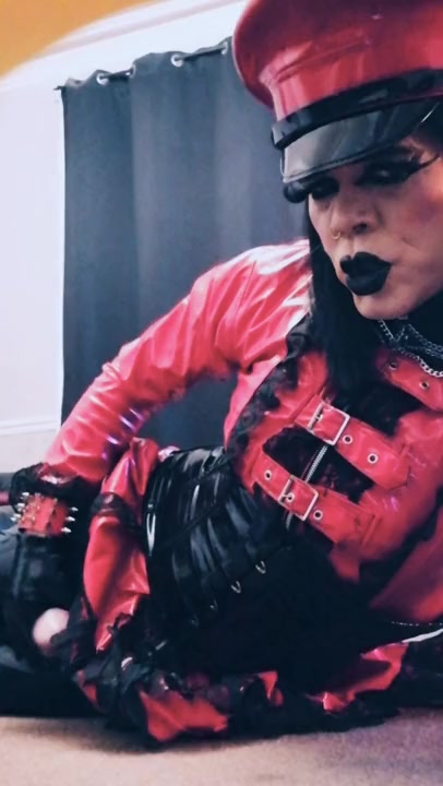 vinyl Dressed In Ladyboy Outdoors Spunking in the Rain