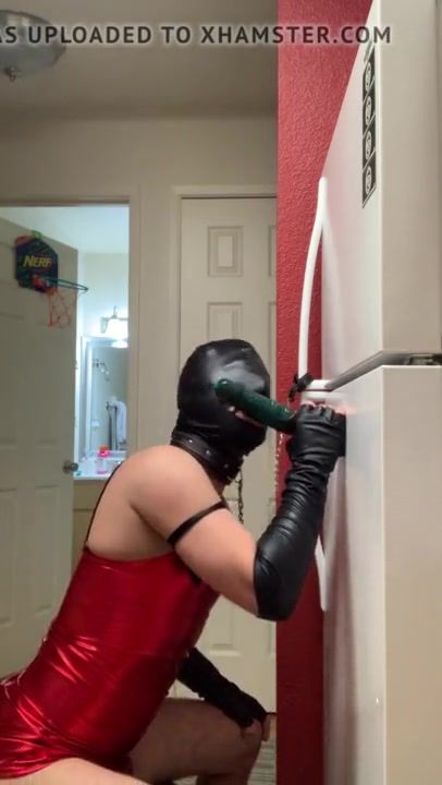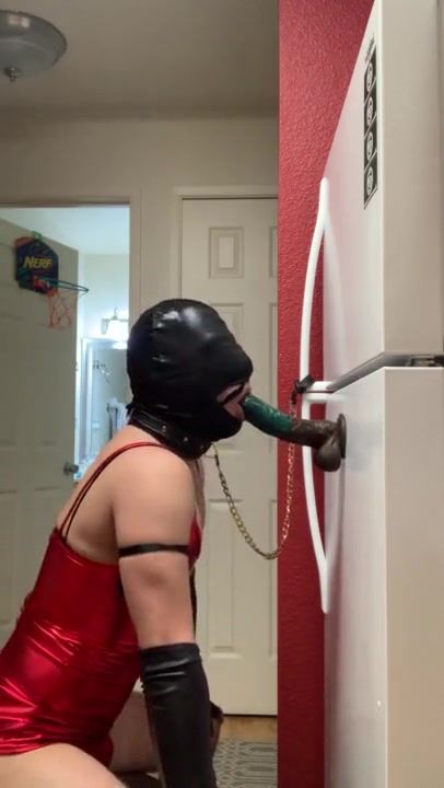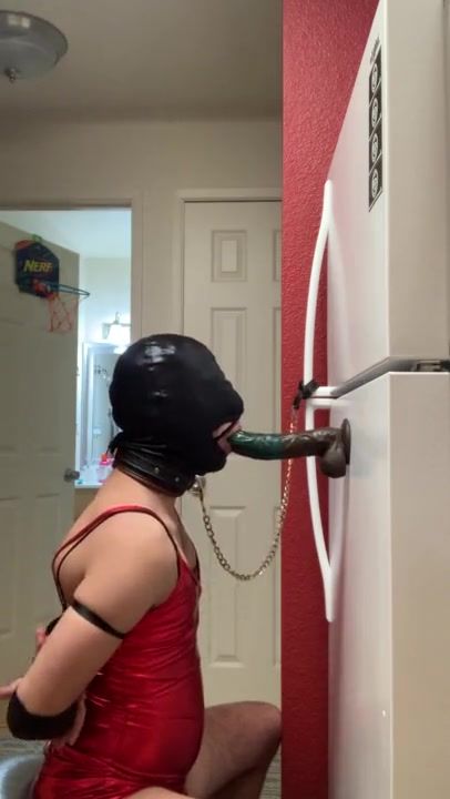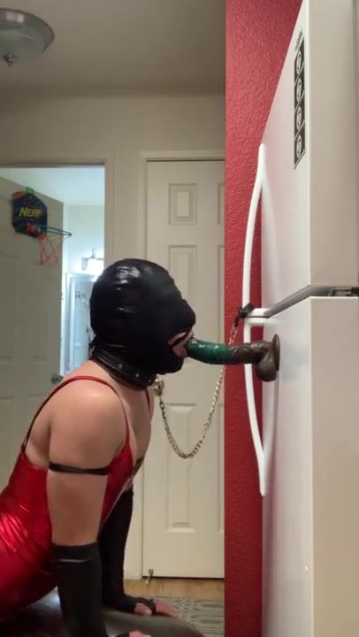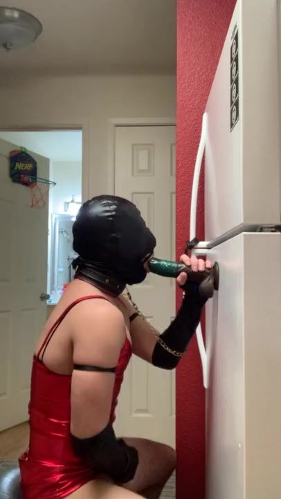 Horny sissy sucks on dildo until master gets home from fucking another slave