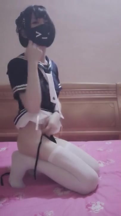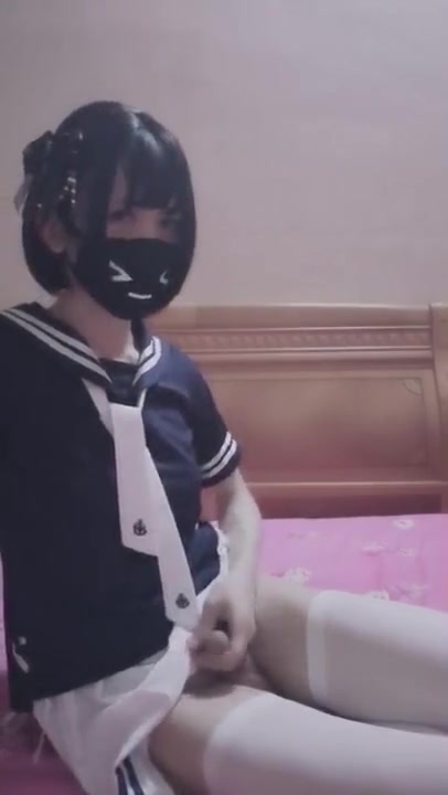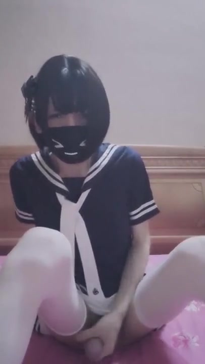 Crossdresser college uniform jizz shot