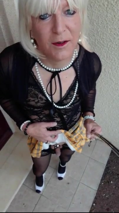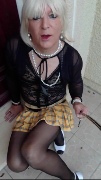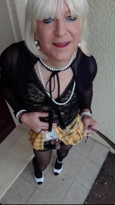 Taunting in my yellow miniskirt and piggy top ,,im a bit wobbly on my thick stilet...
