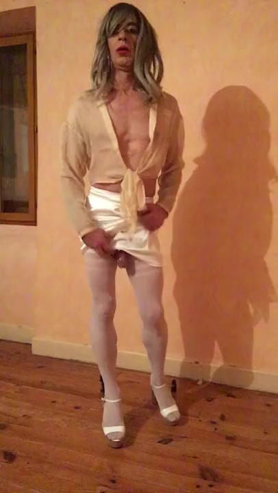 Encaged sissy Traceytv plugged pulled out organza mini microskirt trio