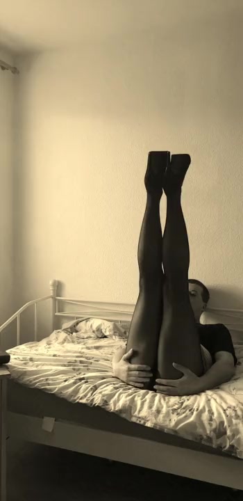 Kitty nylon woman bare in long black leather hip shoes and FF nylon pantyhose