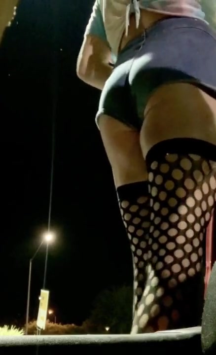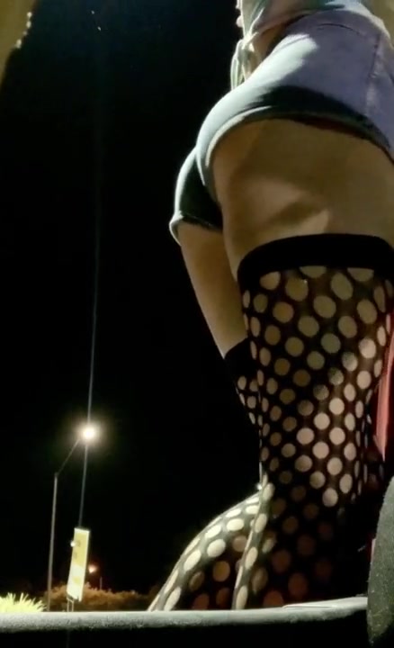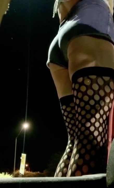 PUBLIC SISSY SLUT DISPLAY OF SEXY ASS IN BOOTY SHORTS, FISHNET THIGH-HIGHS, CARS DRIVING BY, SEXY CROSSDRESSER SHOWING OFF HER SLUTTY SEXY BODY!