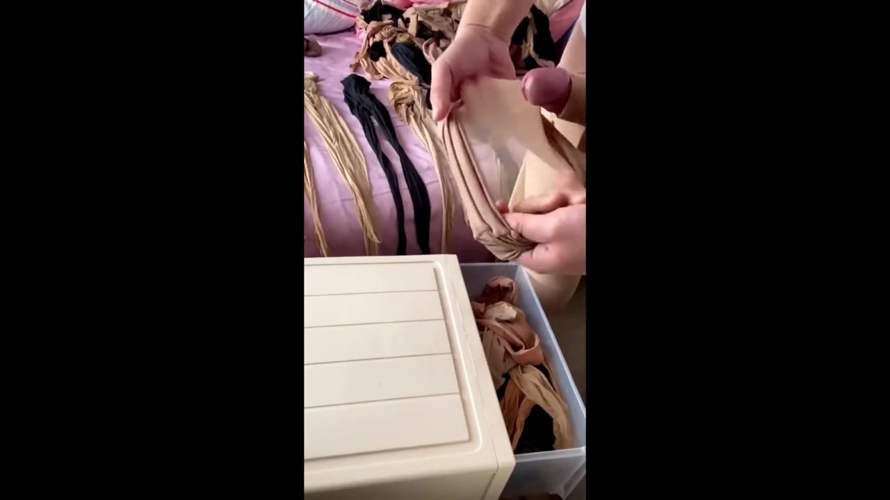 took out my wife's pantyhose and tights and layer them one by one all over my cock