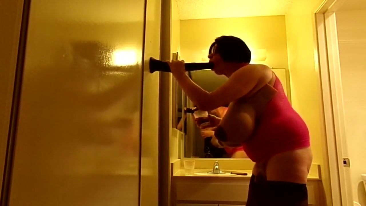 Having fun with a horse cock dildo