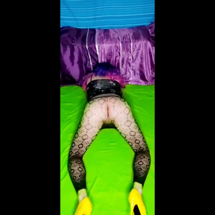 Dark Haired transgender princess in white fishnet tights pulls out a clean-shaved ...