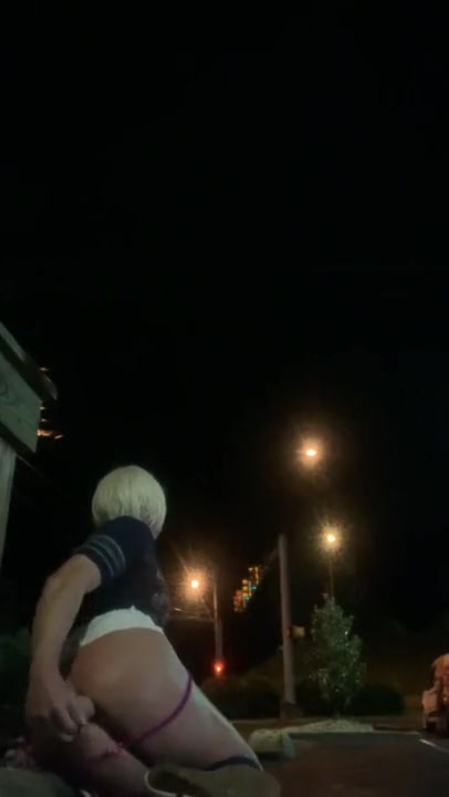 Cindie Love, tight short skirt, tons of risky slutty butt plug play, but plug showing in public, G string panties, stranger walking by, Cindy invites stranger to give her a smack on her bare ass!