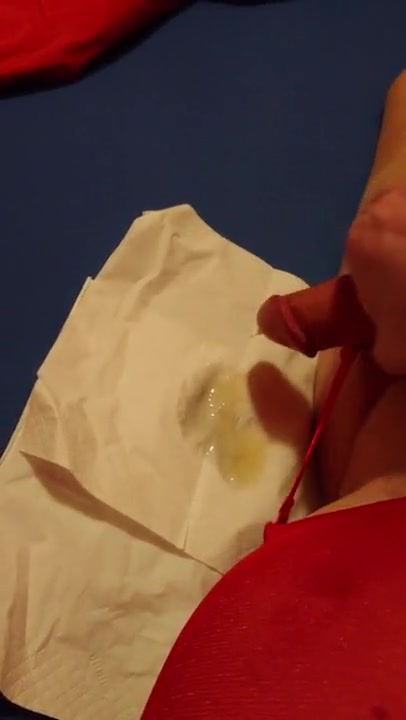 Geil im roten Mieder und Strümpfen gewichst und geil abgespritzt