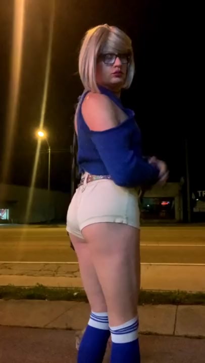 CINDIE LOVE, INSATIABLE PUBLIC SLUT! INCREDIBLE KHAKI SHORT SHORTS, LONG SEXY LEGS, PRETTY, VICTORIA'S SECRET PANTIES, amazing dildo Eno roadside for cars and trucks, public sidewalks