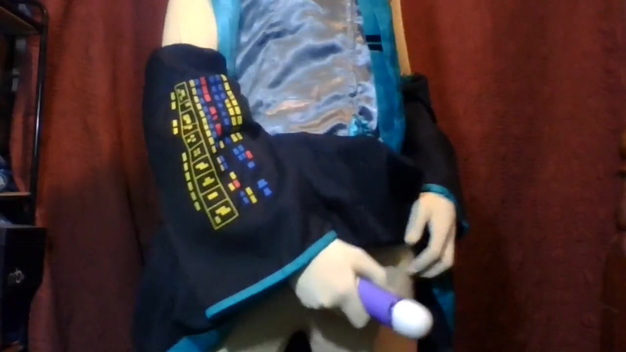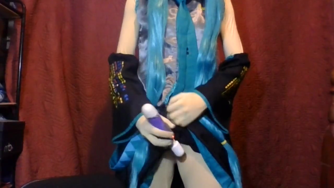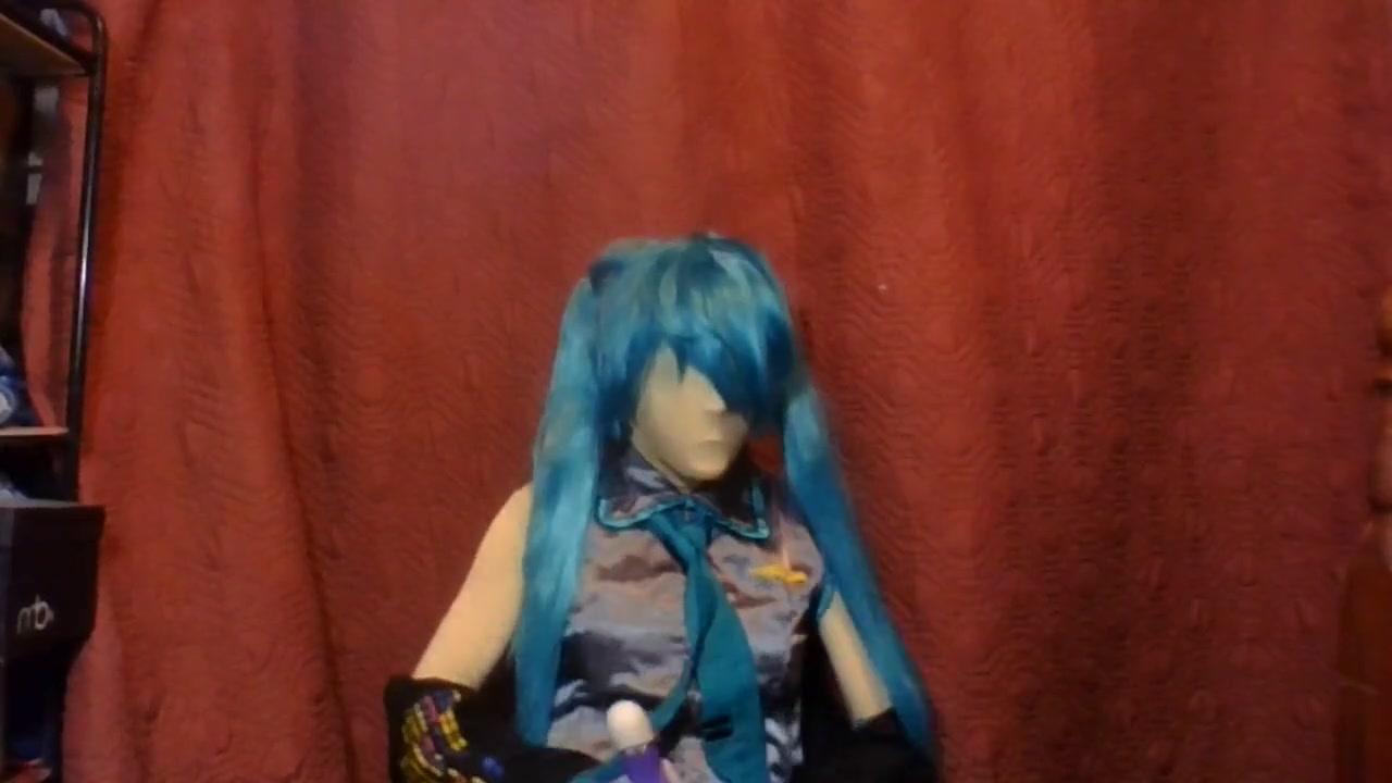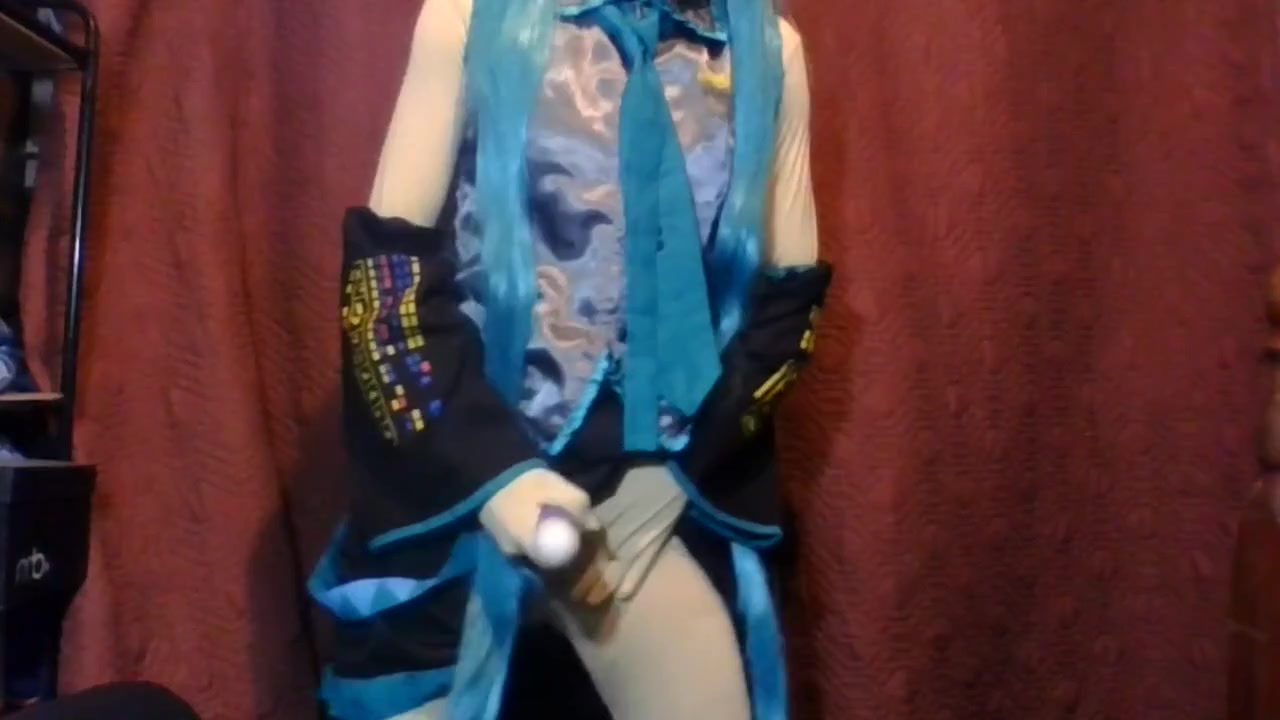 Miku Hatsune Costume Play Crossdresser Cum-Shots over her