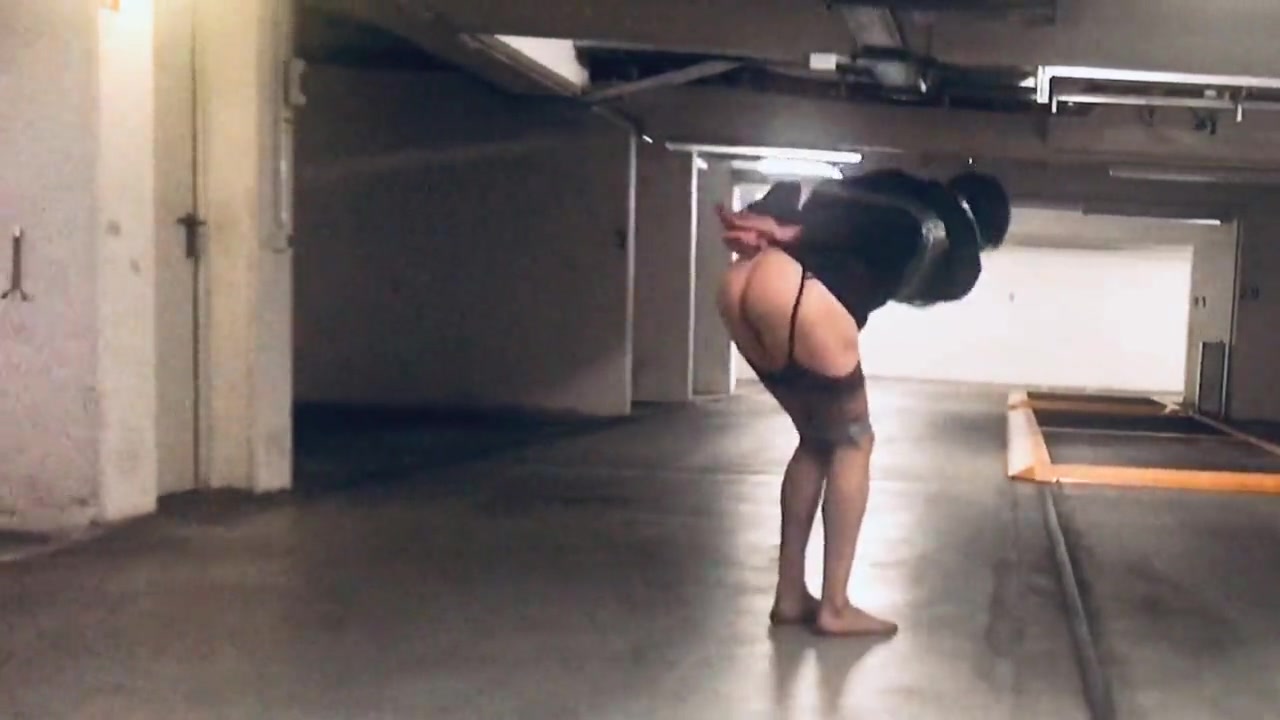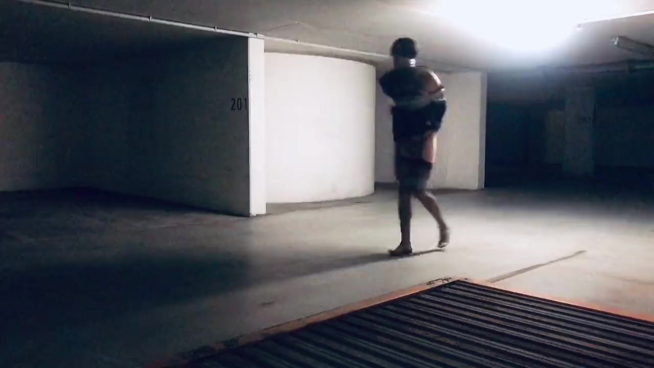 Little self bondage....tied up in an empty parking lot, clothes ripped off and trying to find an exit....