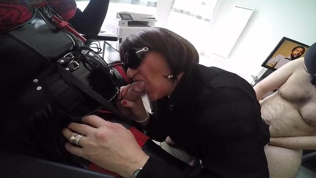 Mature shemale with big cock sucked by a cute classy mature shemale who also suck a hairy boy.