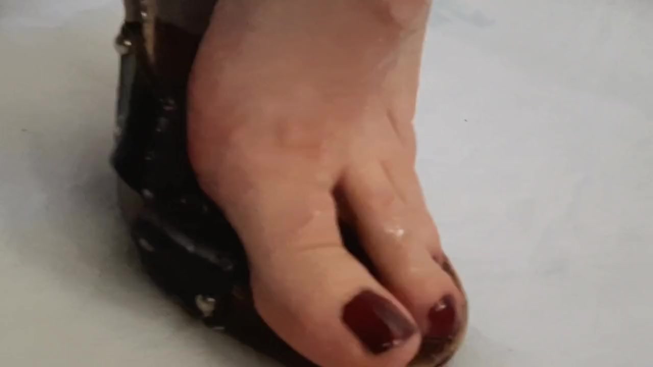 Transgirl Ponybuny jizm on her soles and high-heeled slippers