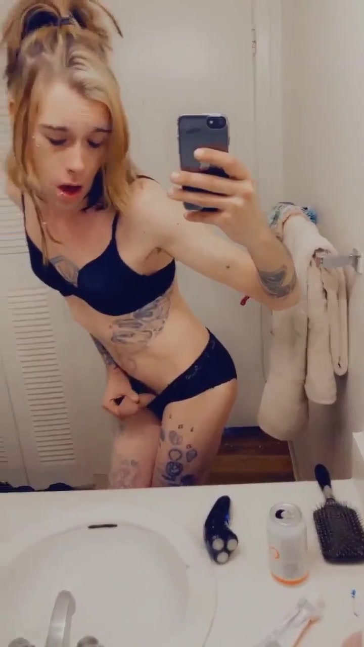 TRANS500 - Bigass transsexual queen in undergarments milking off and displaying booty
