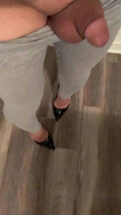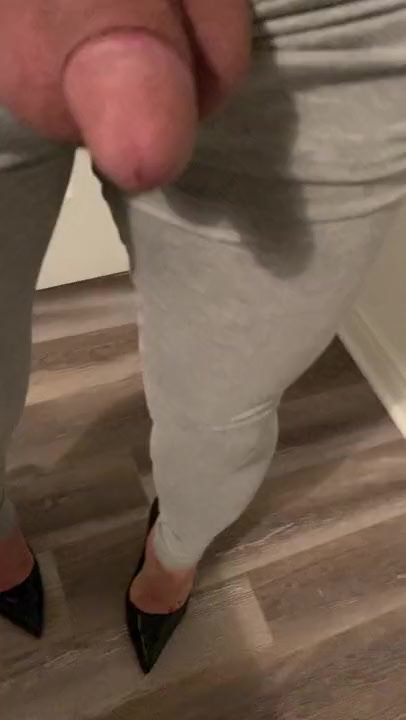 My new girlfriend went to take a shower so I decided to wear my xwife friend’s leggings and my xwife classic pointy high heels. I didn’t get an erection because I was scared to get caught.