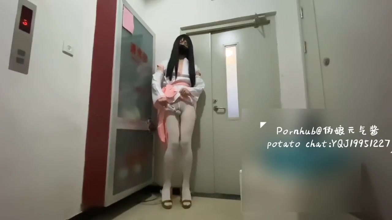 长着鸡巴的幼年雷姆在楼道用AV棒手淫到潮吹|伪娘元气酱